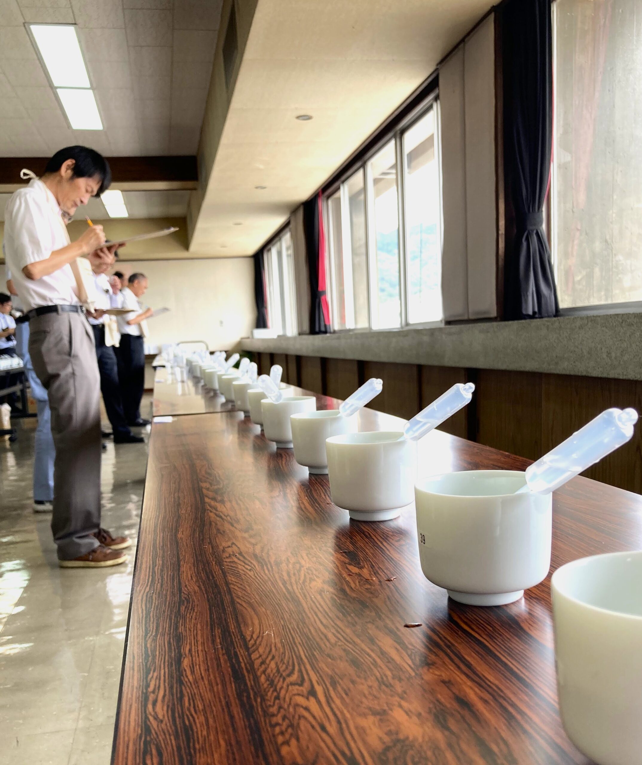 吟醸酒部門 72点、純米吟醸酒部門 77点、純米酒部門 19点の出品があり、味、香り、香味バランスなど酒質全般についての官能審査が行われました。
