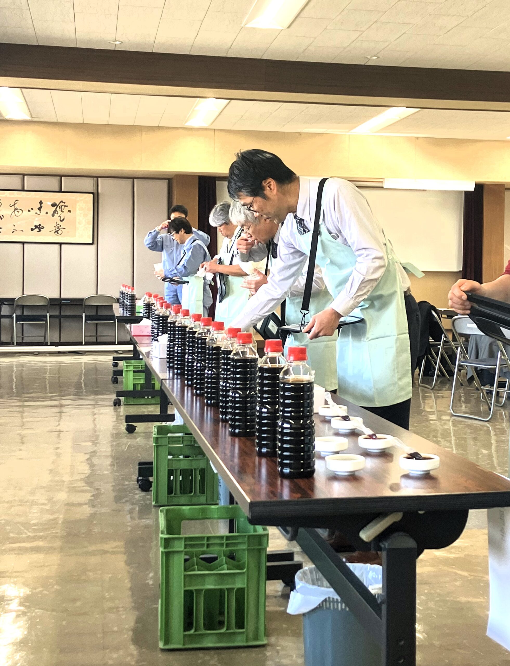 醤油品評会はこいくち21点、うすくち11点の合計32点、市販醤油研究会はこいくち22点、うすくち13点、醤油加工品2点の合計37点が出品され、色、味、香りについて審査が行われました。